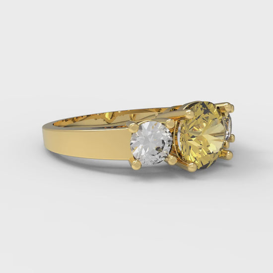 1.5 cttw Natural Citrine Three-Stone Engagement Ring - Solid Gold (Round Cut,6.5mm)