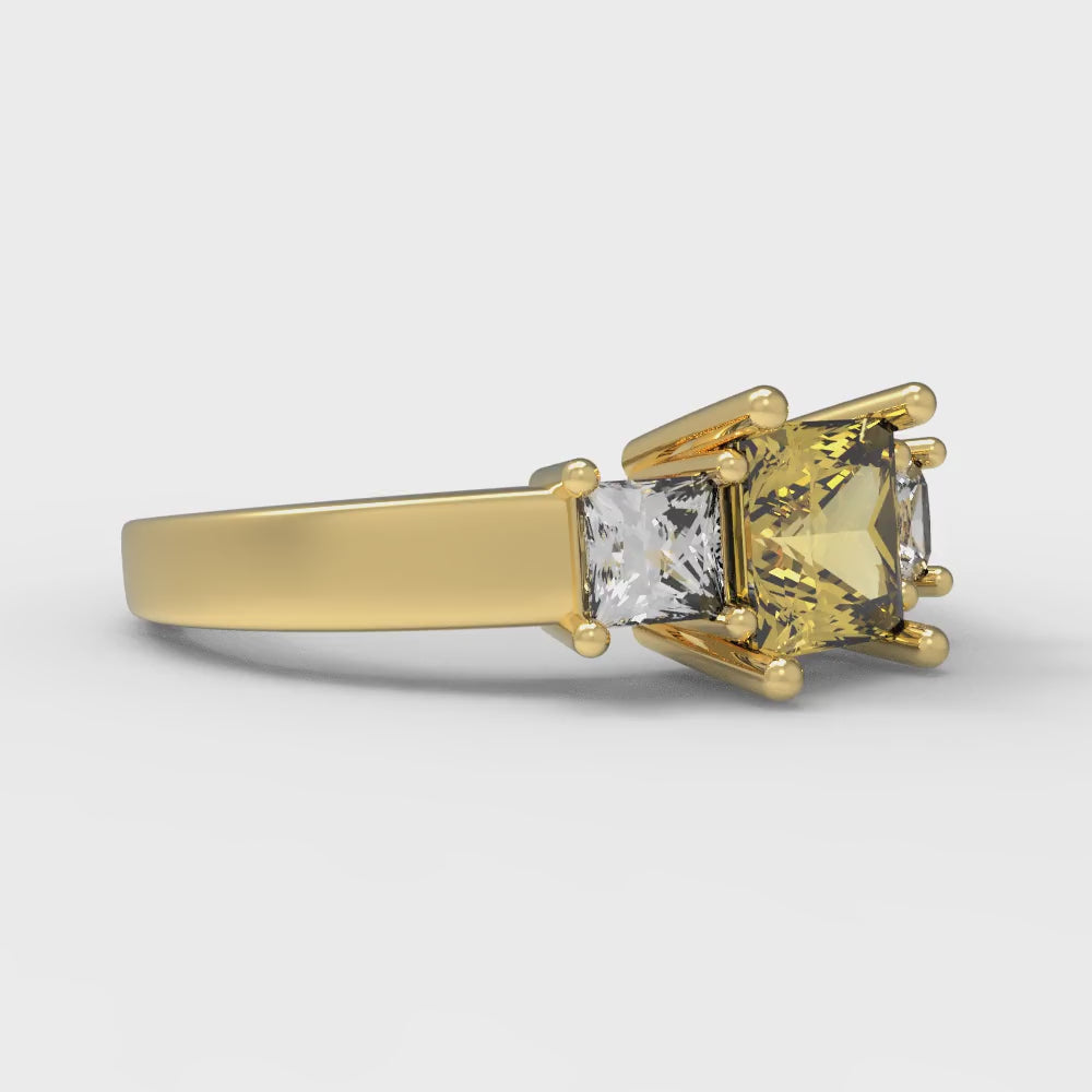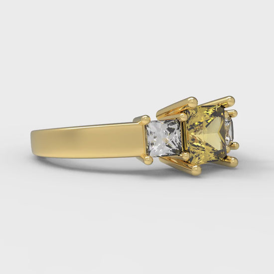 1.11 cttw Natural Citrine Three-Stone Engagement Ring - Solid Gold (Princess Cut,5.0mm)