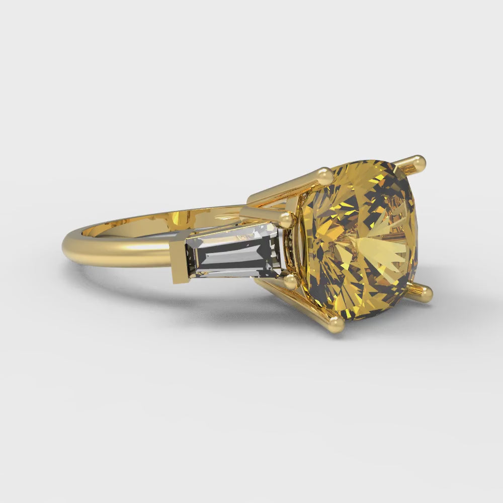 3 cttw Natural Citrine Three-Stone Engagement Ring - Solid Gold (Cushion Cut,8.0mm)