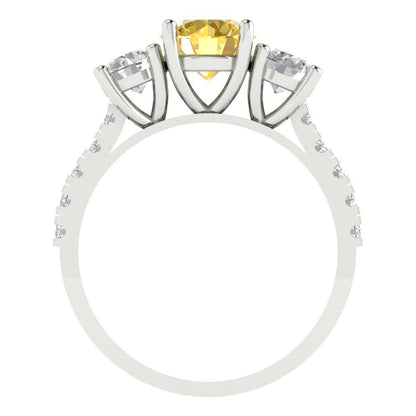 1.97 cttw Natural Citrine Three-Stone Engagement Ring - Solid Gold (Round Cut,6.5mm)