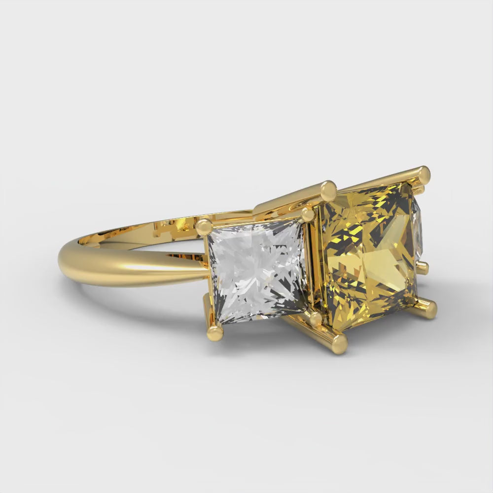 2.5 cttw Natural Citrine Three-Stone Engagement Ring - Solid Gold (Princess Cut,6.5 mm)