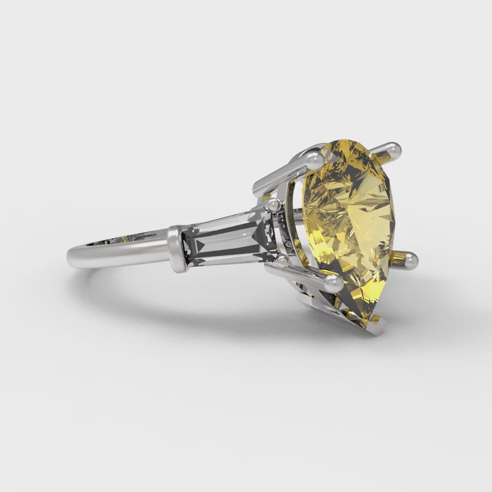 2.5 cttw Natural Citrine Three-Stone Engagement Ring - Solid Gold (Pear Cut,10x7mm)