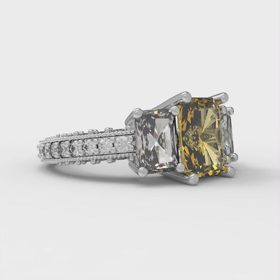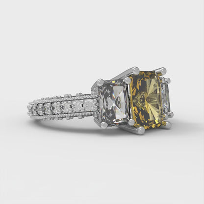 3.61 cttw Natural Citrine Three-Stone Engagement Ring - Solid Gold (Emerald Cut,8x6mm)