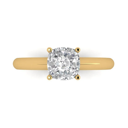1.5 cttw Zirconia Simulated Diamond Solitaire Engagement Ring - Solid Gold (VVS1, Cushion Cut,6.5mm)