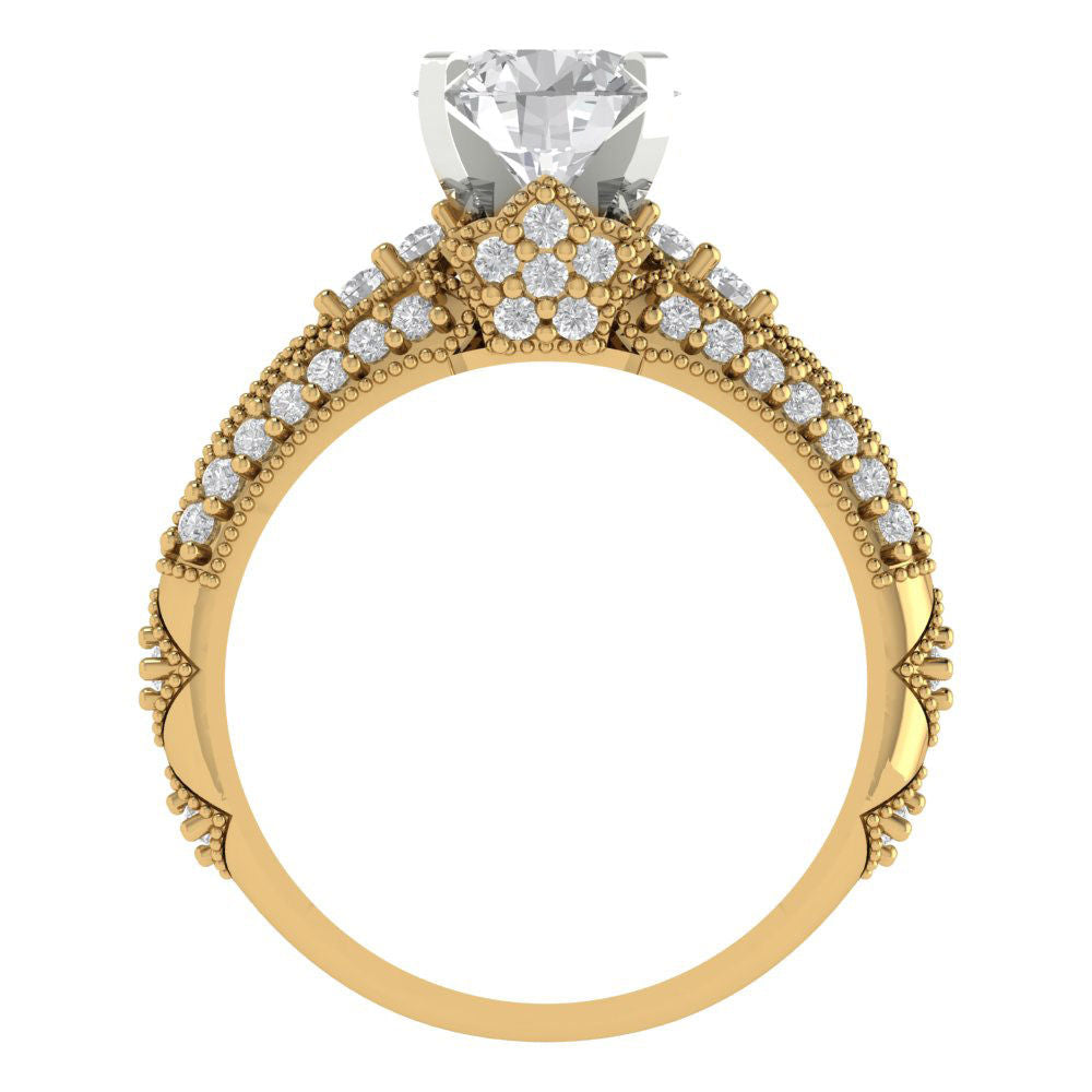 2.095 cttw Round Cut Zirconia Simulated Diamond Bridal Set - Solid Yellow/White Gold Engagement Ring & Wedding Band
