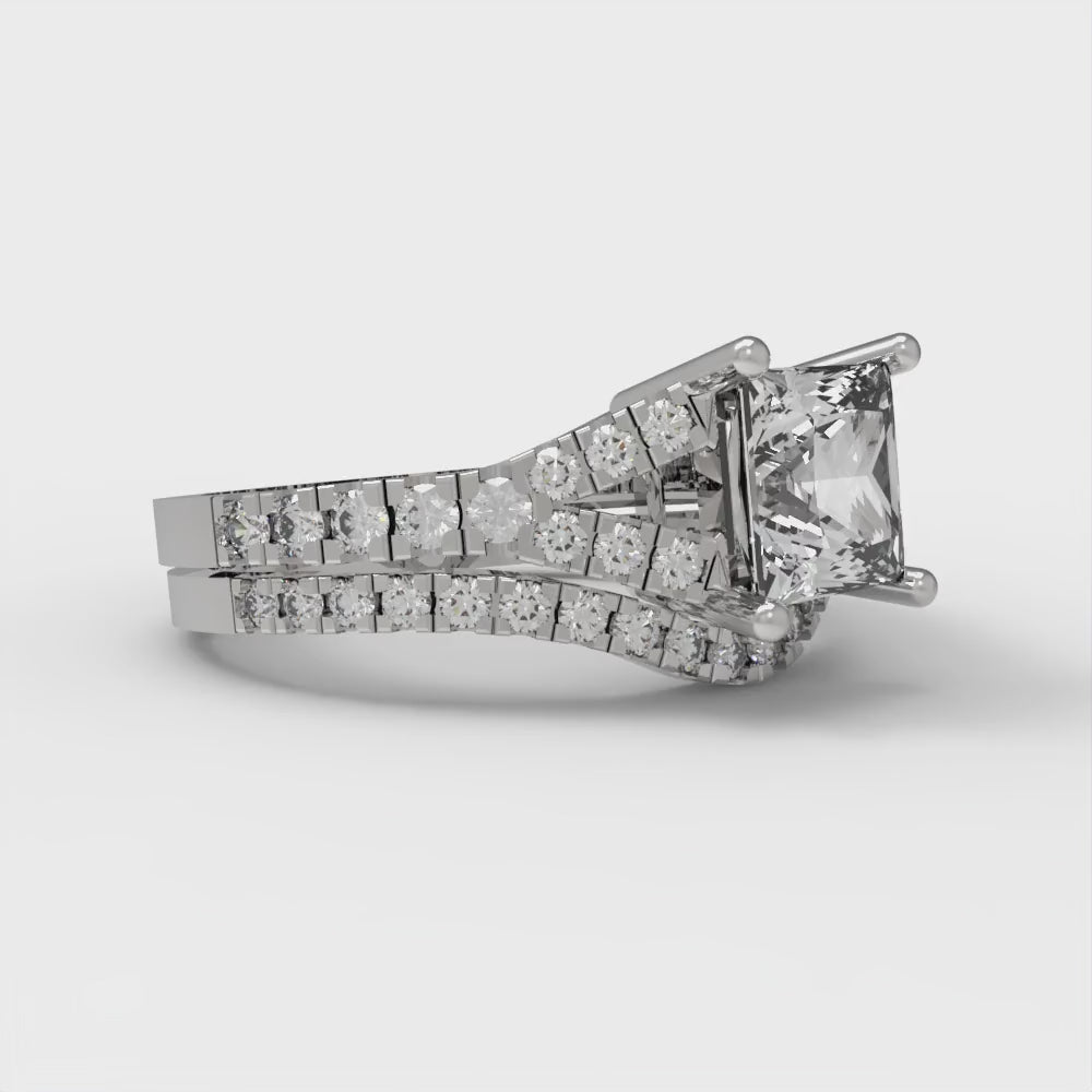3.4 cttw Princess Cut Zirconia Simulated Diamond Bridal Set - Solid White Gold Engagement Ring & Wedding Band