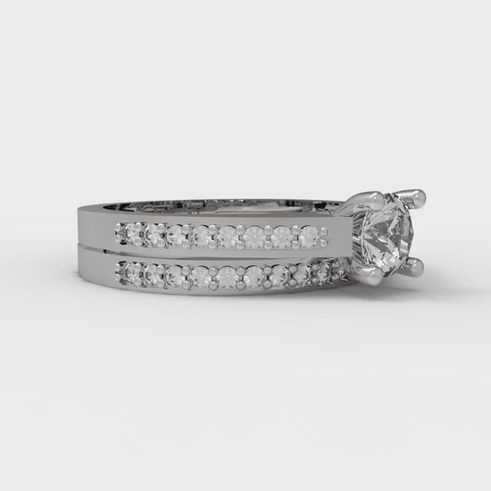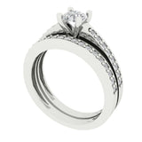 0.86 cttw Round Cut Zirconia Simulated Diamond Bridal Set - Solid White Gold Engagement Ring & Wedding Band