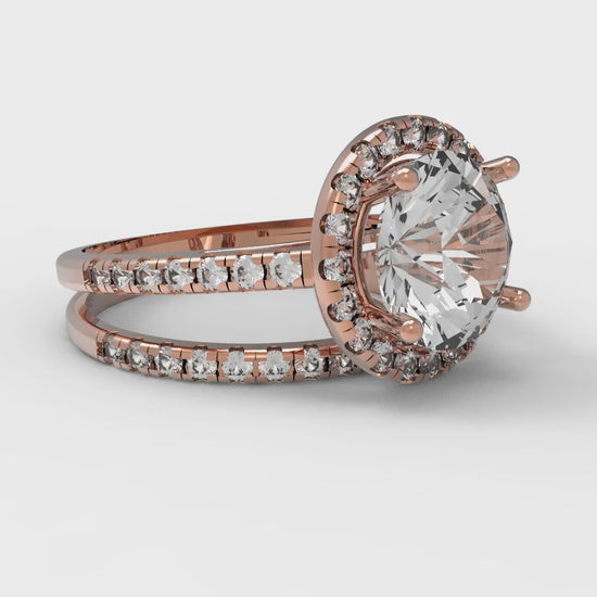 2.52 cttw Round Cut Zirconia Simulated Diamond Bridal Set - Solid Rose Gold Engagement Ring & Wedding Band