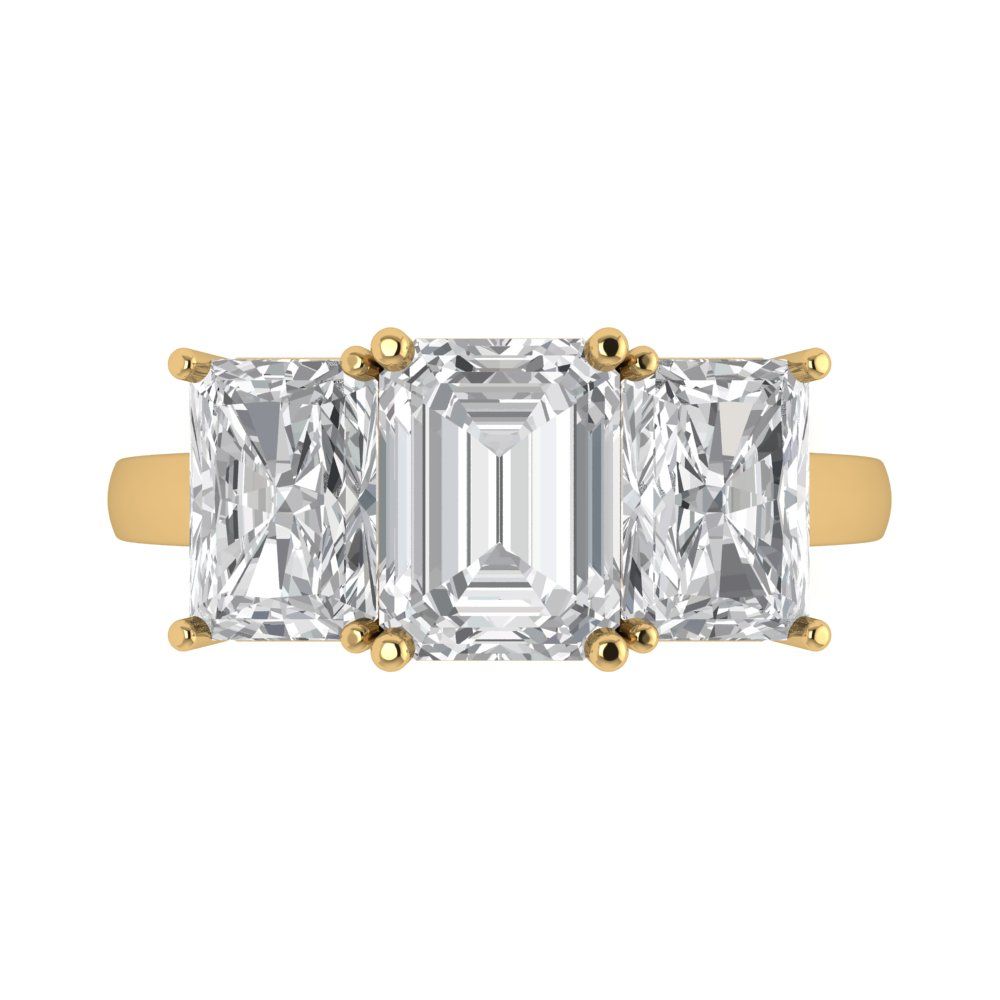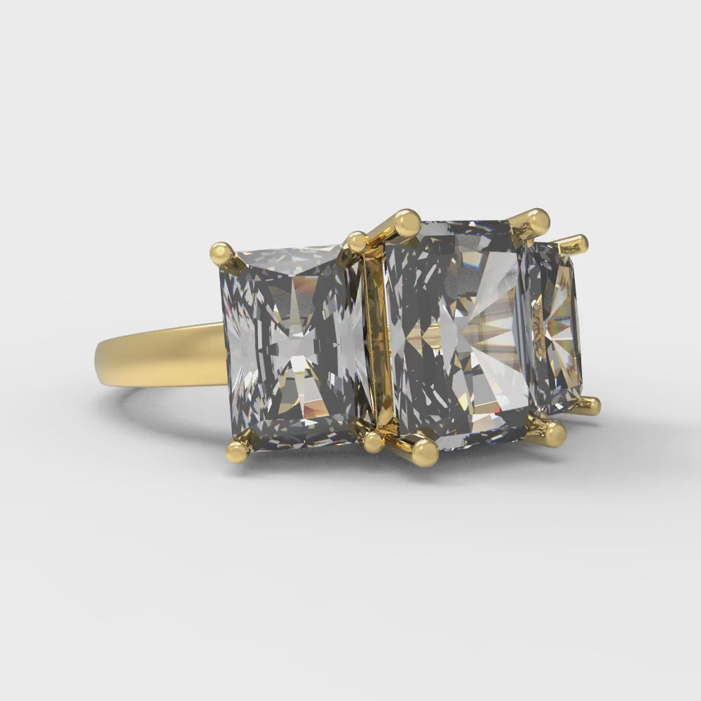 4 cttw Zirconia Simulated Diamond Three-Stone Engagement Ring - Solid Gold (VVS1, Emerald Cut,8x6mm)