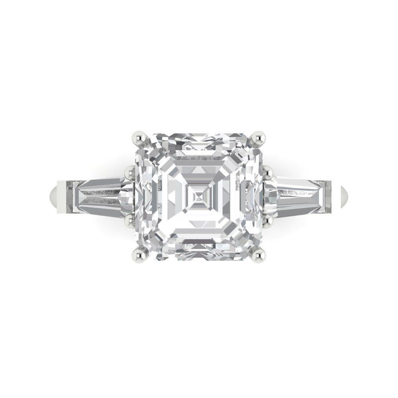 3 cttw Zirconia Simulated Diamond Three-Stone Engagement Ring - Solid Gold (VVS1, Asscher Cut,8.0mm)