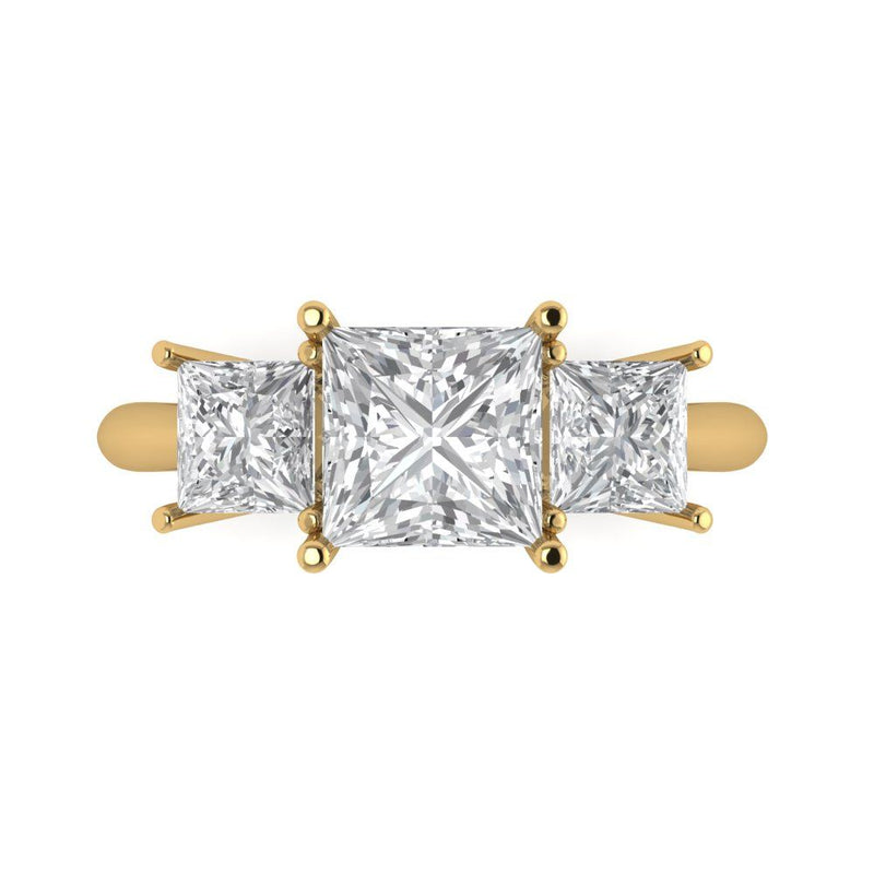 2.5 cttw Zirconia Simulated Diamond Three-Stone Engagement Ring - Solid Gold (VVS1, Princess Cut,6.5 mm)