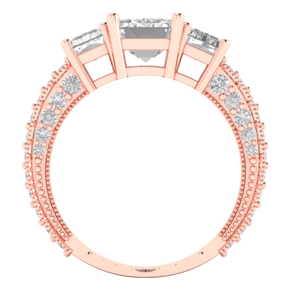 3.61 cttw Zirconia Simulated Diamond Three-Stone Engagement Ring - Solid Gold (VVS1, Emerald Cut,8x6mm)