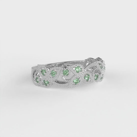 0.17 cttw Simulated Emerald Round Cut White Gold Eternity Wedding Band