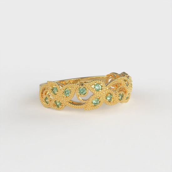 0.17 cttw Simulated Emerald Round Cut Yellow Gold Eternity Wedding Band