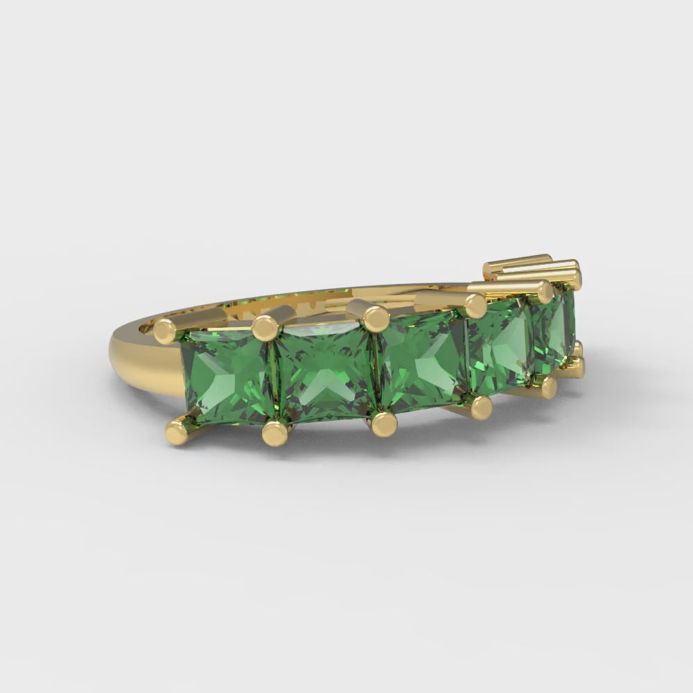 1.75 cttw Simulated Emerald Princess Cut Yellow Gold Eternity Wedding Band