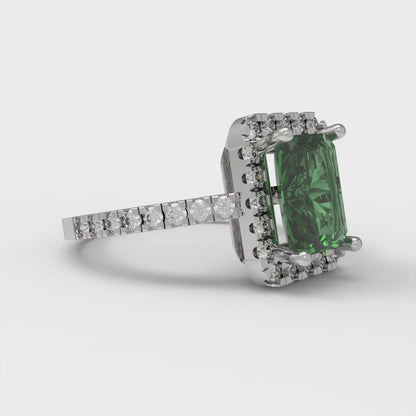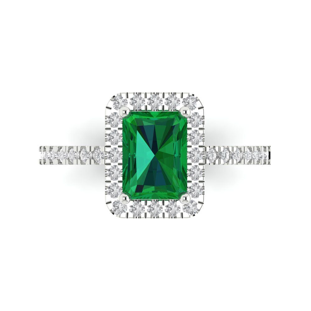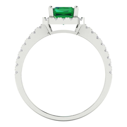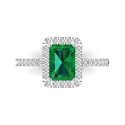 1.86 cttw Simulated Emerald Hidden Halo Engagement Ring - Solid Gold (Emerald Cut,7.5x5.5mm)