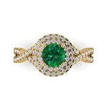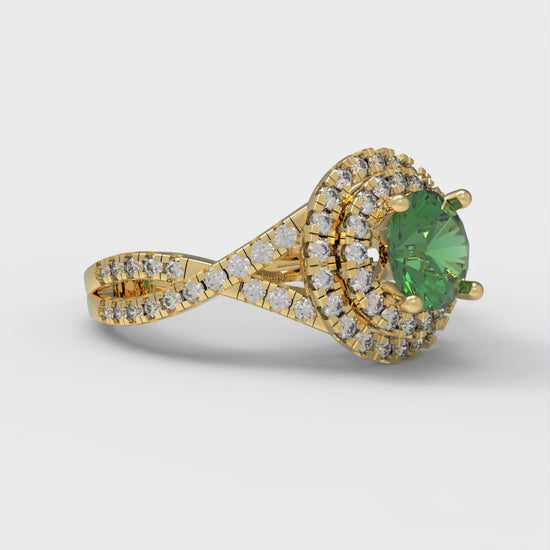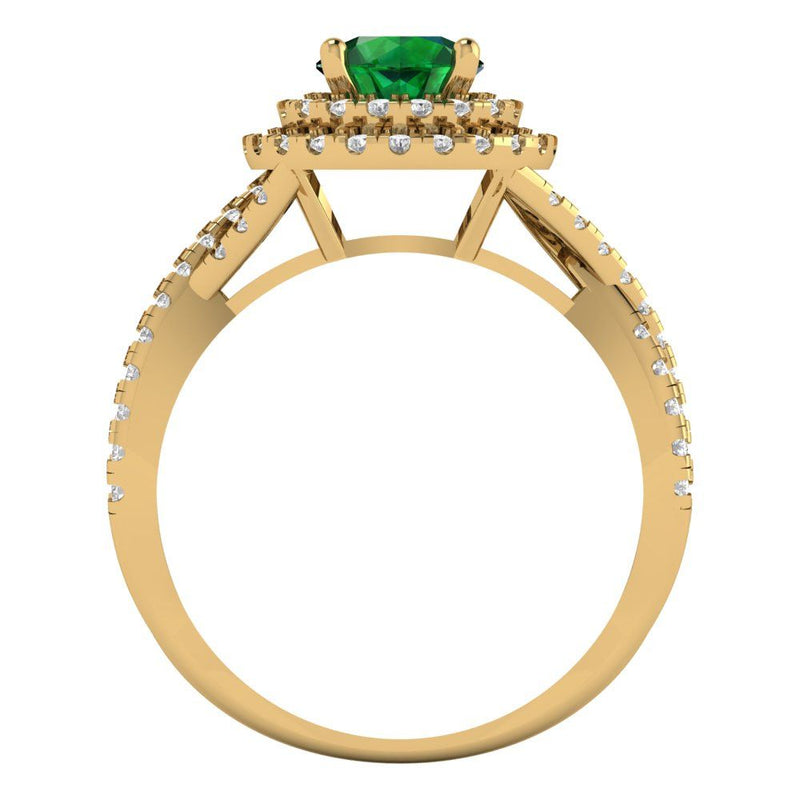 1.3125 cttw Simulated Emerald Hidden Halo Engagement Ring - Solid Gold (Round Cut,6mm)