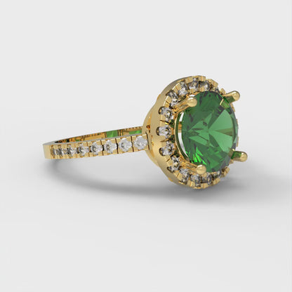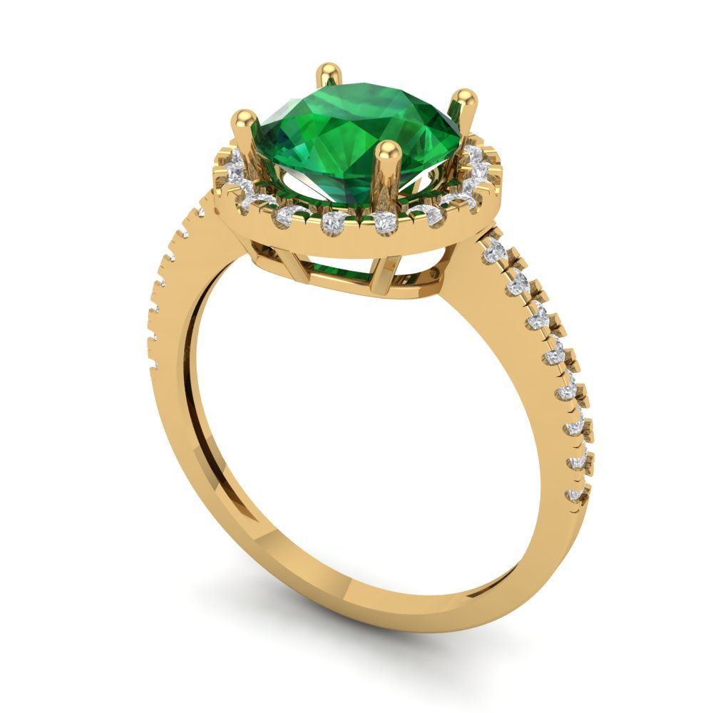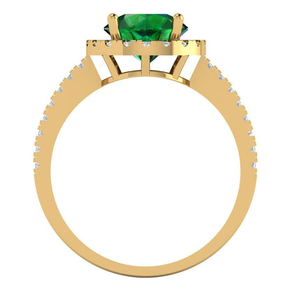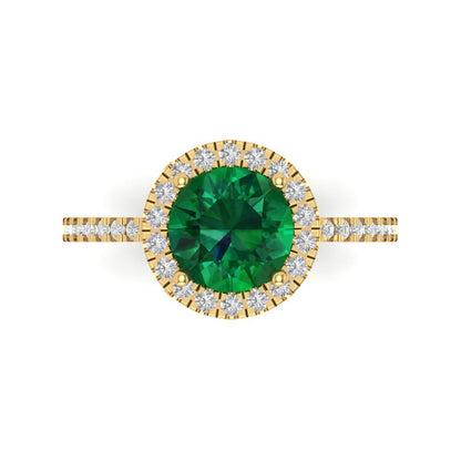 1.8 cttw Simulated Emerald Hidden Halo Engagement Ring - Solid Gold (Round Cut,7.5mm)