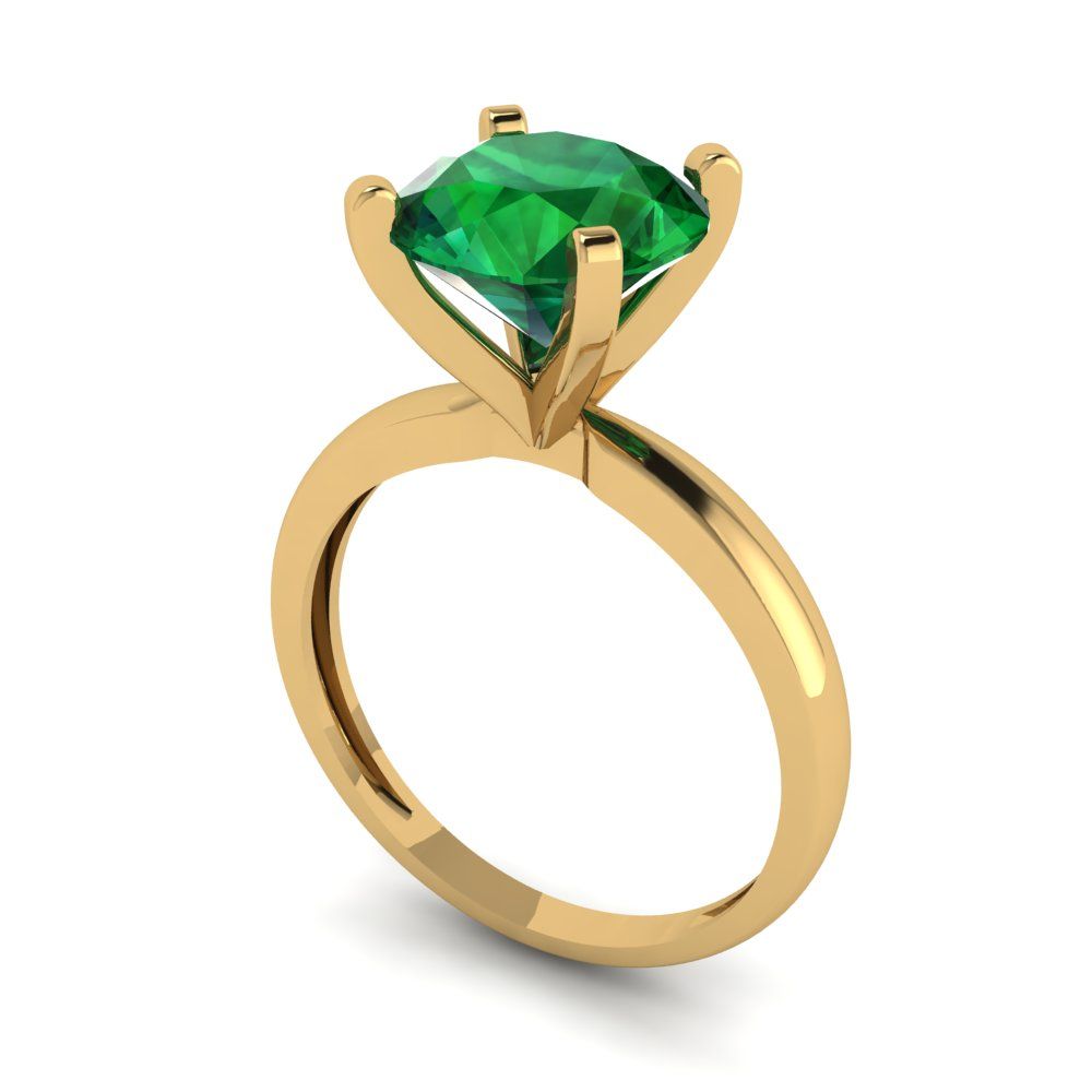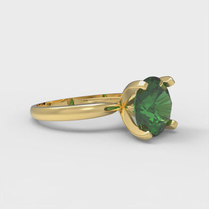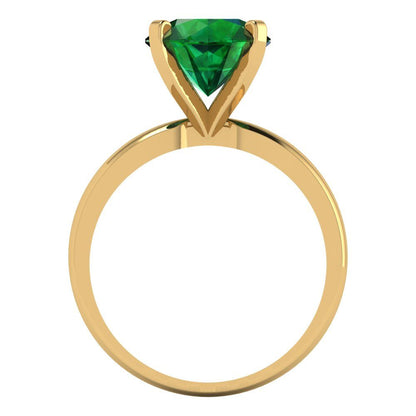 3 cttw Simulated Emerald Solitaire Engagement Ring - Solid Gold (Round Cut,9mm)