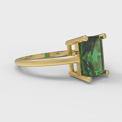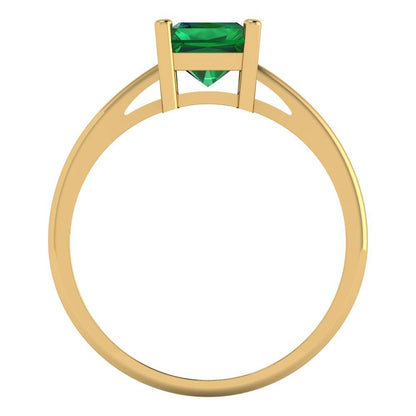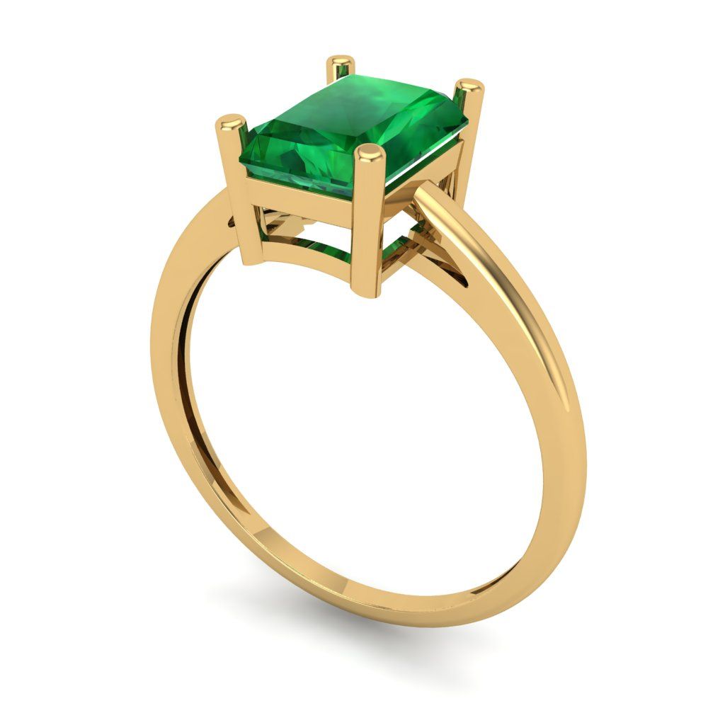 2 cttw Simulated Emerald Solitaire Engagement Ring - Solid Gold (Emerald Cut,8x6mm)