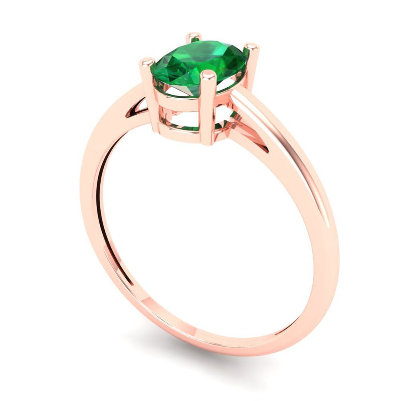 1 cttw Simulated Emerald Solitaire Engagement Ring - Solid Gold (Oval Cut,7x5mm)