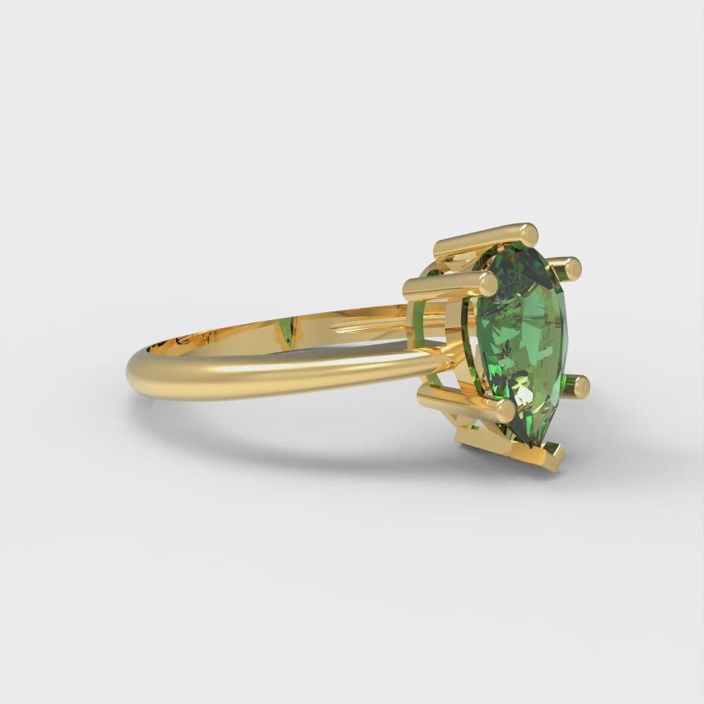 1 cttw Simulated Emerald Solitaire Engagement Ring - Solid Gold (Pear Cut,8x5mm)