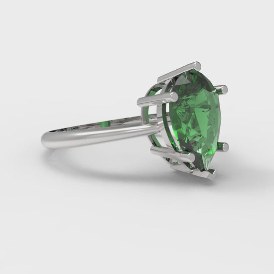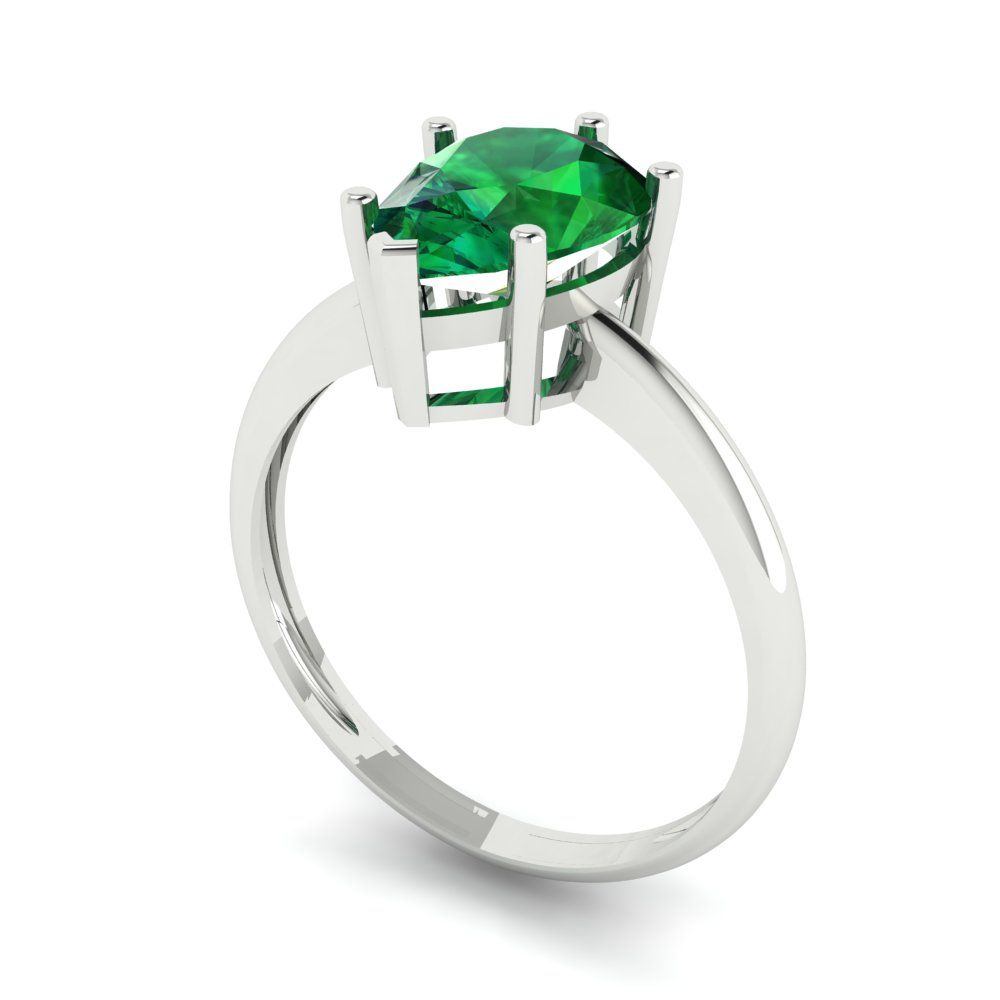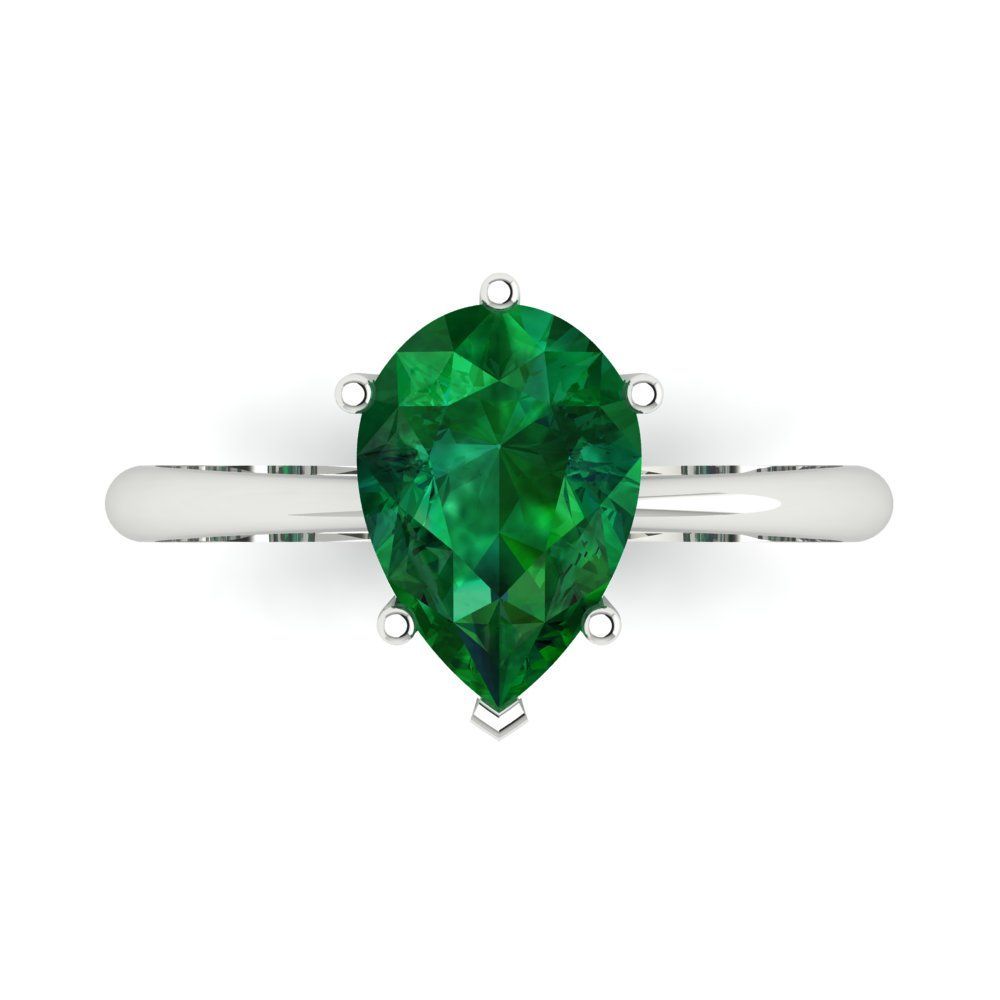 2 cttw Simulated Emerald Solitaire Engagement Ring - Solid Gold (Pear Cut,10x7mm)