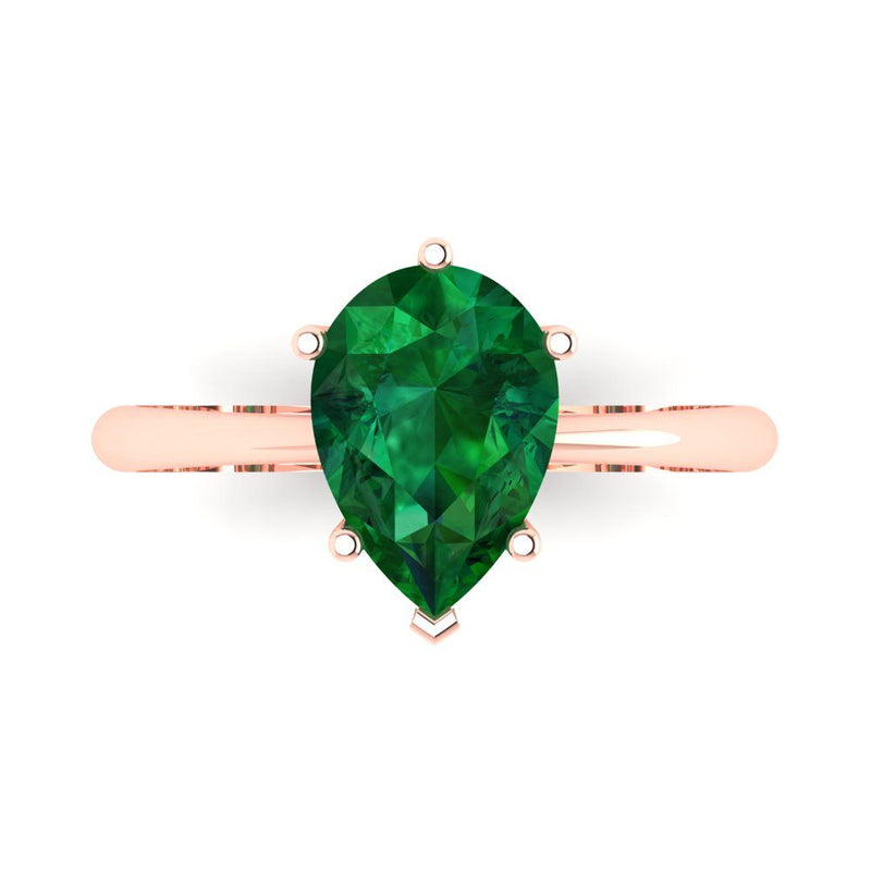 2 cttw Simulated Emerald Solitaire Engagement Ring - Solid Gold (Pear Cut,10x7mm)
