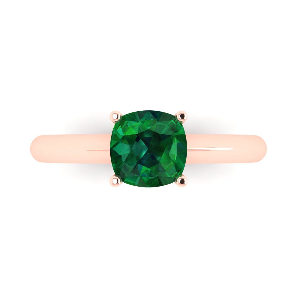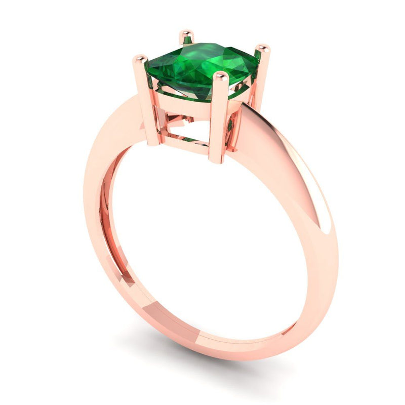 1.5 cttw Simulated Emerald Solitaire Engagement Ring - Solid Gold (Cushion Cut,6.5mm)