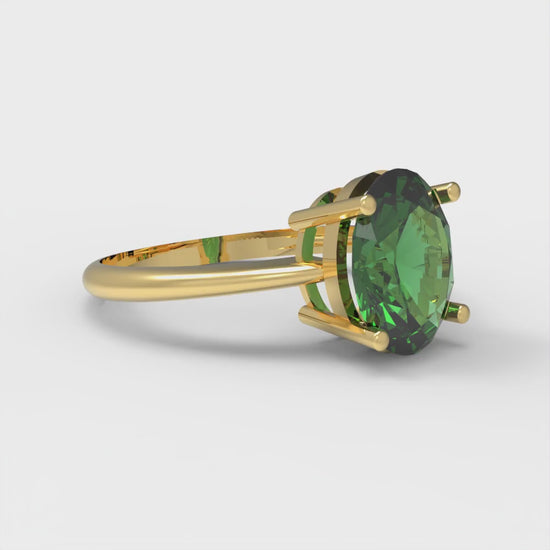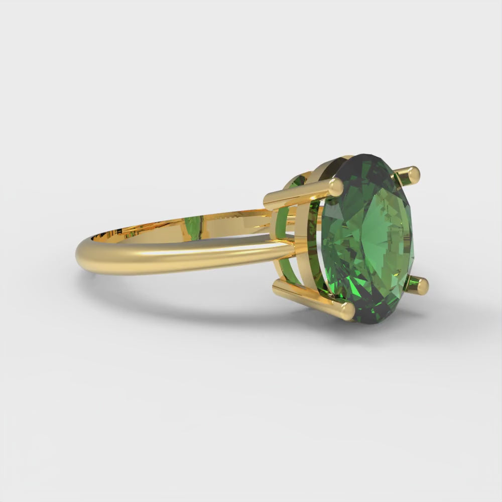 2 cttw Simulated Emerald Solitaire Engagement Ring - Solid Gold (Oval Cut,9x7mm)