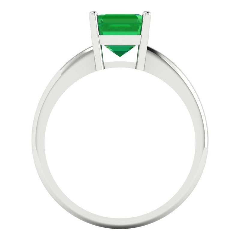 1.5 cttw Simulated Emerald Solitaire Engagement Ring - Solid Gold (Asscher Cut,6.5mm)