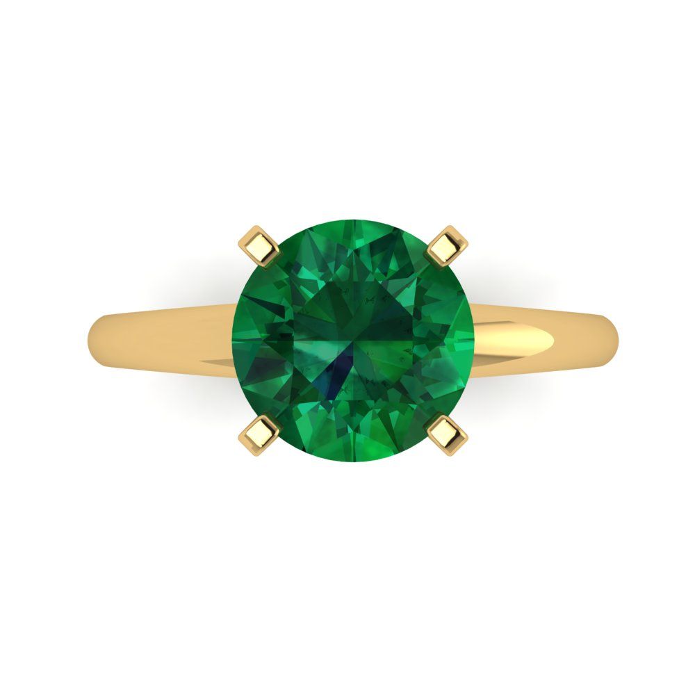 2.5 cttw Simulated Emerald Solitaire Engagement Ring - Solid Yellow Gold (VVS1, Round Cut,8.5mm)