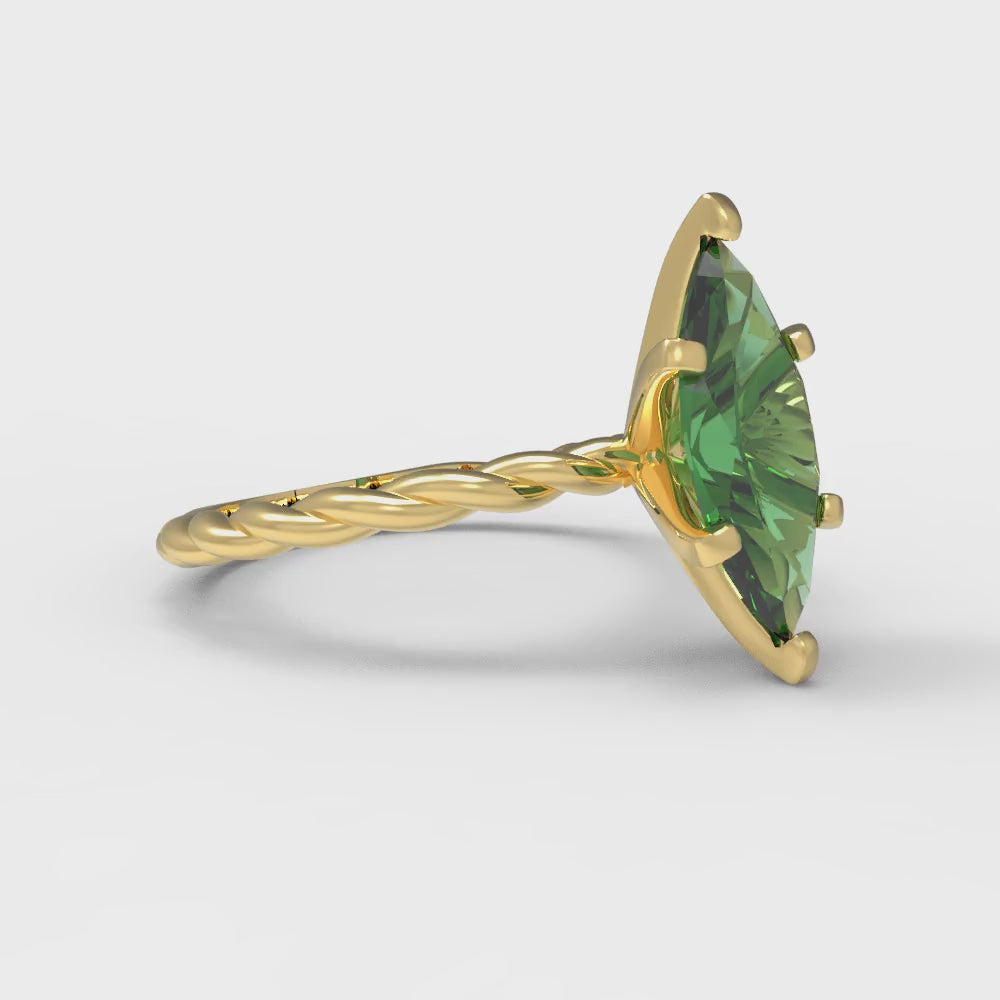 2 cttw Simulated Emerald Solitaire Engagement Ring - Solid Gold (Marquise Cut,12x6mm )