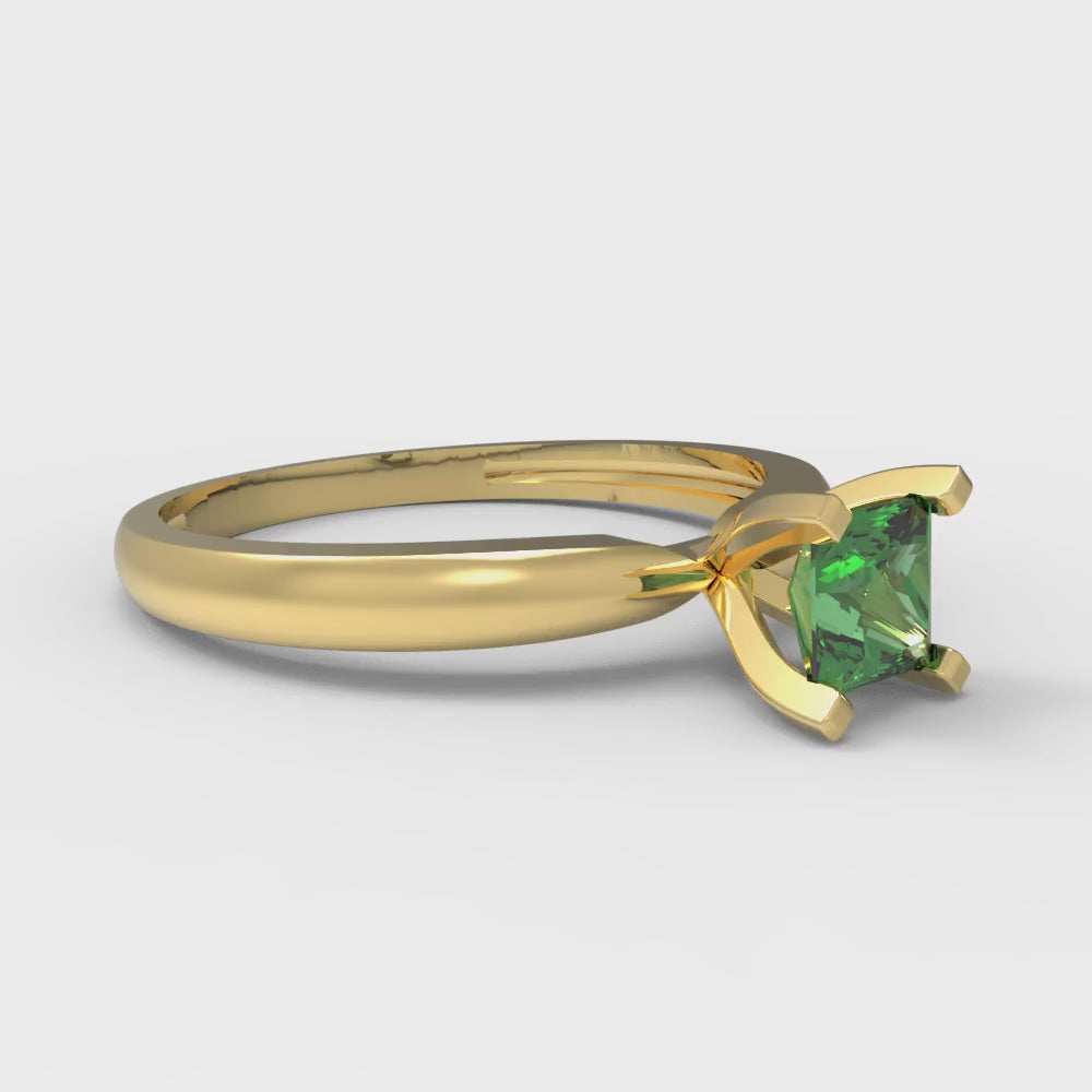 0.5 cttw Simulated Emerald Solitaire Engagement Ring - Solid Gold (Princess Cut,4mm)