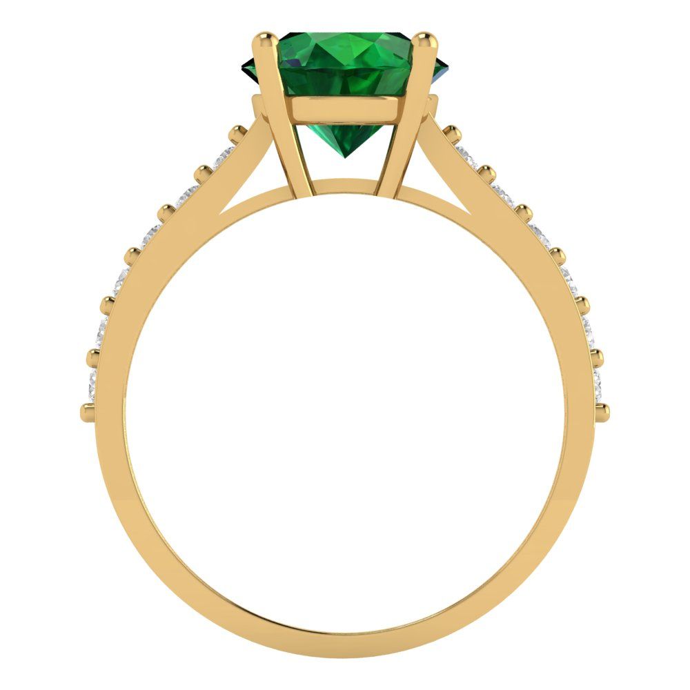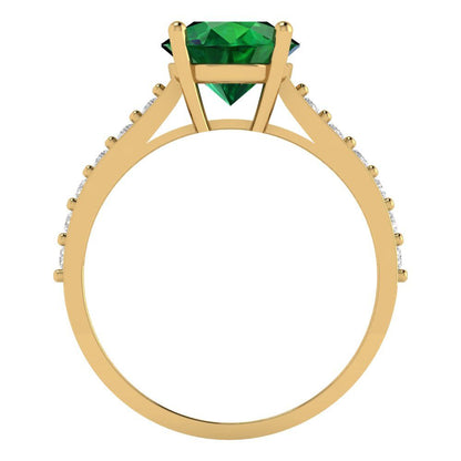 2.3 cttw Simulated Emerald Solitaire with Zirconia Simulated Diamond Accents Engagement Ring - Solid Gold (Round Cut,8.0mm)