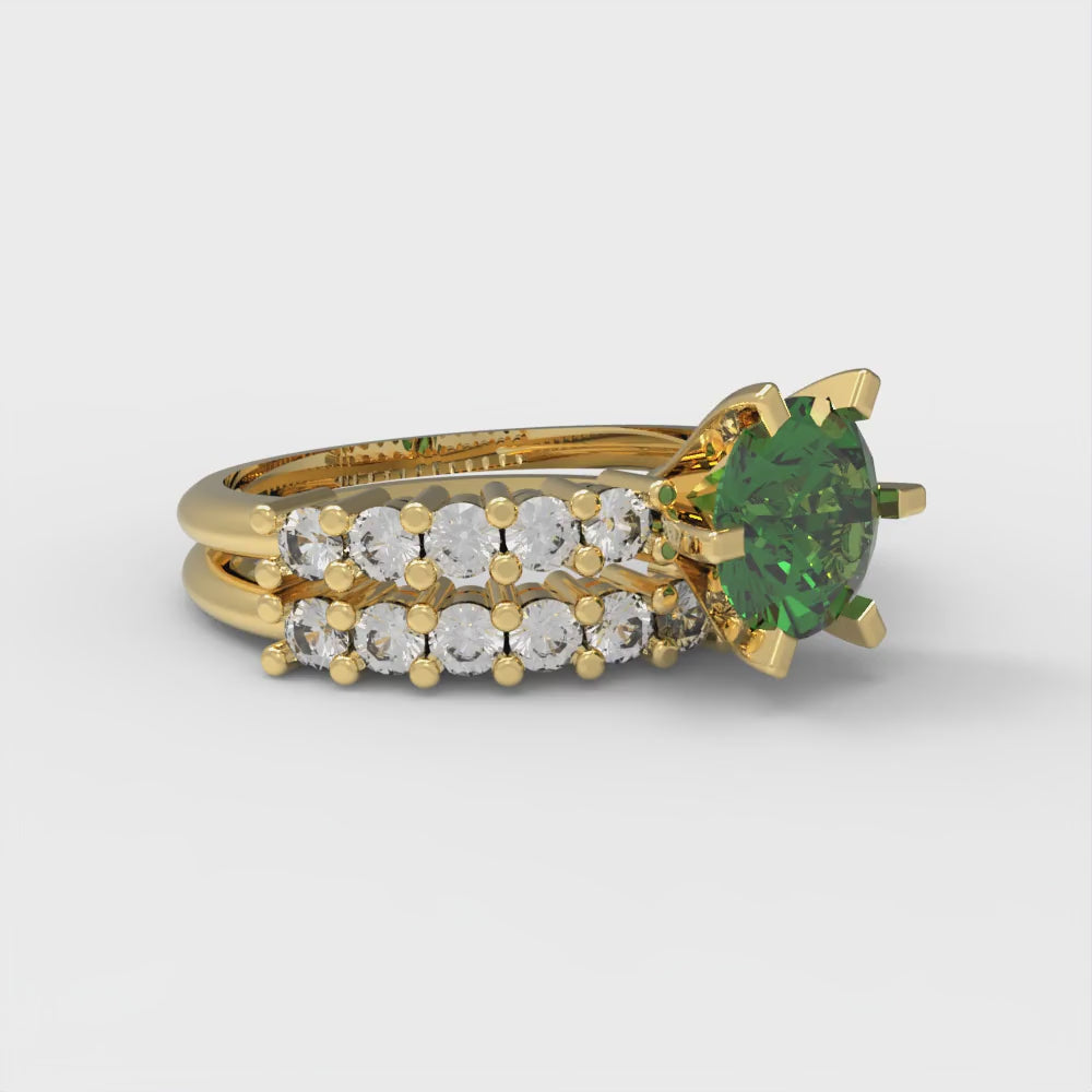 1.66 cttw Round Cut Simulated Emerald Bridal Set - Solid Yellow Gold Engagement Ring & Wedding Band