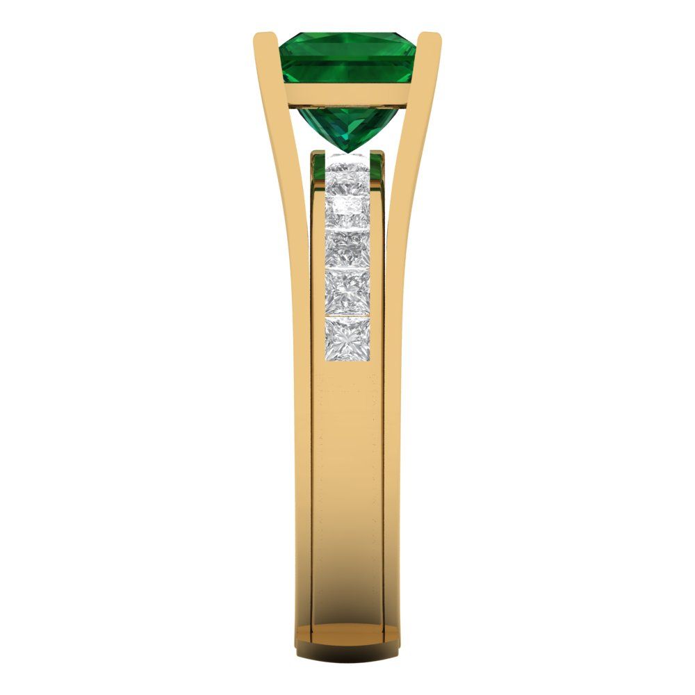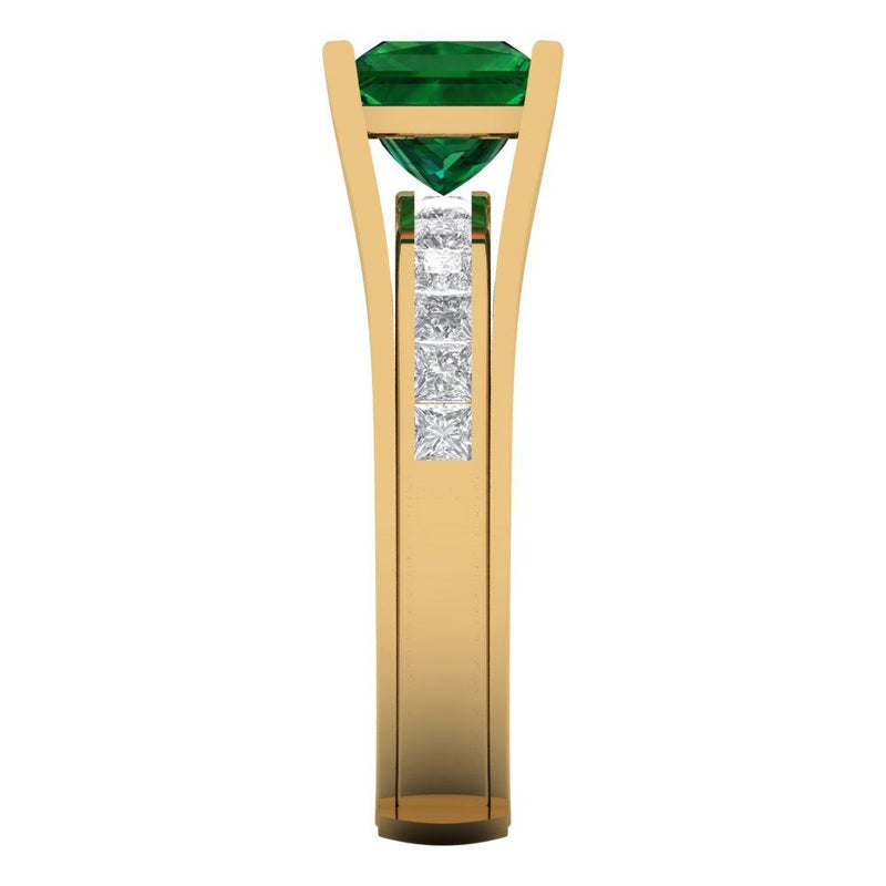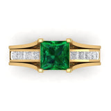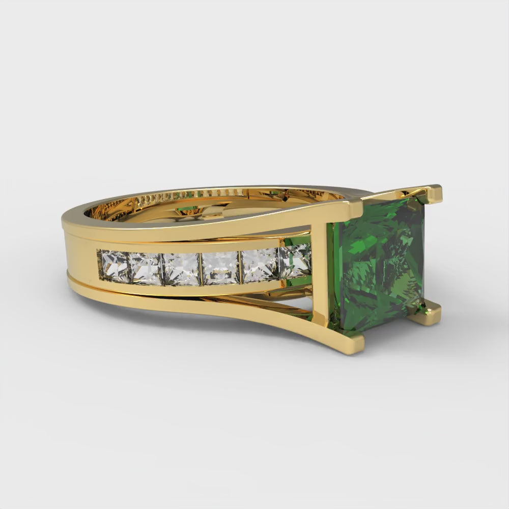 2.28 cttw Princess Cut Simulated Emerald Bridal Set - Solid Yellow Gold Engagement Ring & Wedding Band