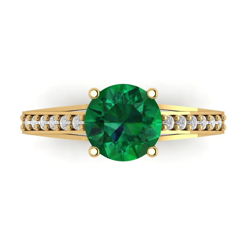 2.21 cttw Simulated Emerald Solitaire with Zirconia Simulated Diamond Accents Engagement Ring - Solid Gold (Round Cut,8.0mm)