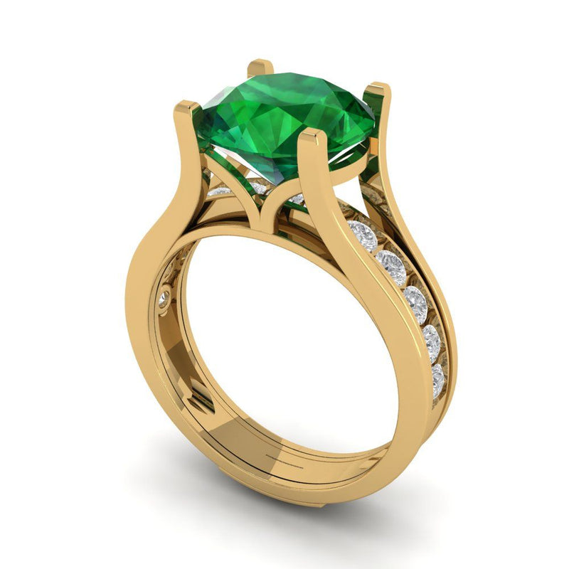 3.39 cttw Round Cut Simulated Emerald Bridal Set - Solid Yellow Gold Engagement Ring & Wedding Band