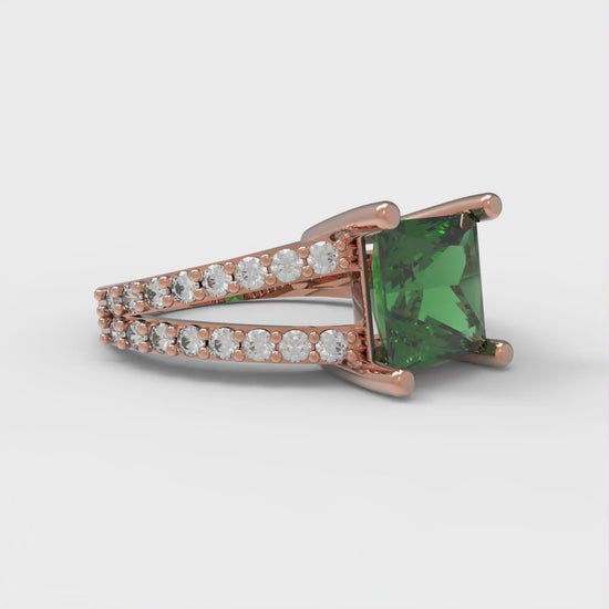 2.48 cttw Simulated Emerald Solitaire with Zirconia Simulated Diamond Accents Engagement Ring - Solid Gold (Princess Cut,7.0mm)