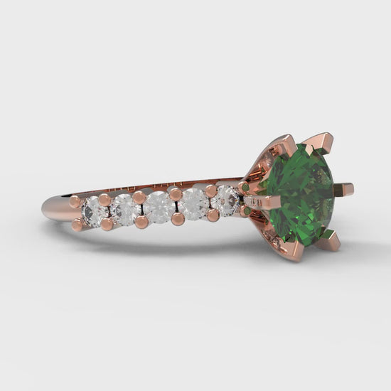 1.05 cttw Simulated Emerald Solitaire with Zirconia Simulated Diamond Accents Engagement Ring - Solid Gold (Round Cut,6.0mm)