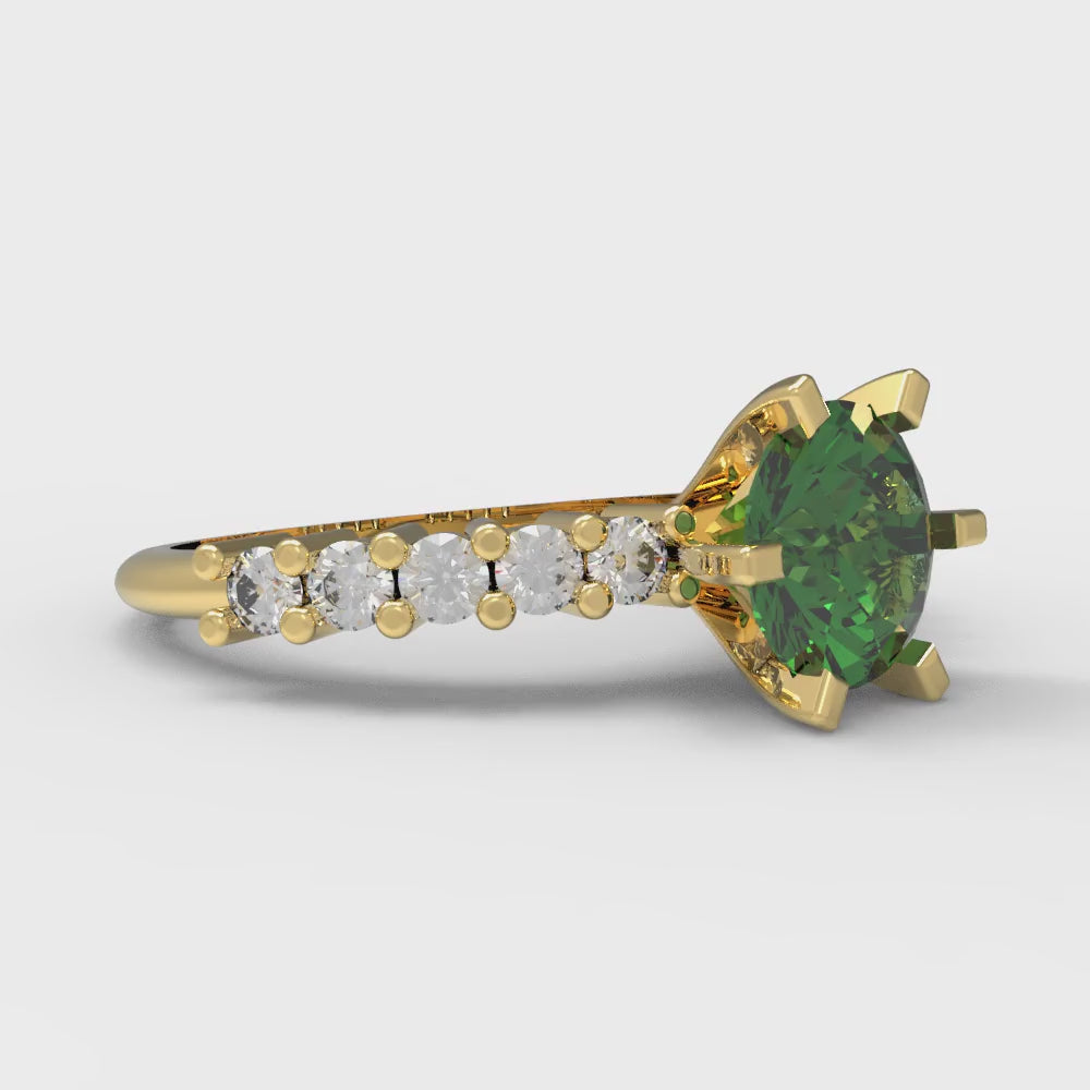 1.05 cttw Simulated Emerald Solitaire with Zirconia Simulated Diamond Accents Engagement Ring - Solid Gold (Round Cut,6.0mm)