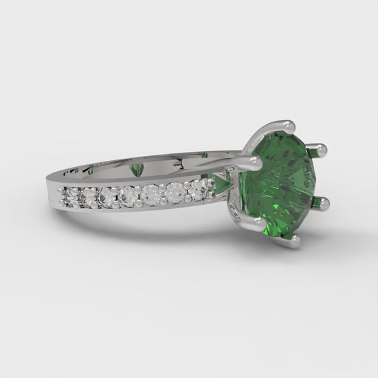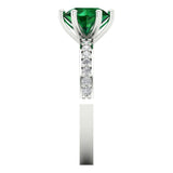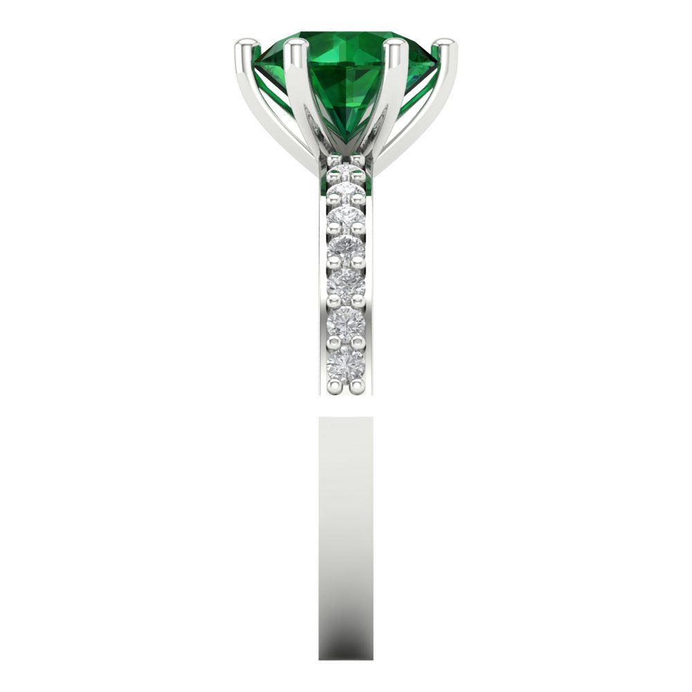 1.71 cttw Simulated Emerald Solitaire with Zirconia Simulated Diamond Accents Engagement Ring - Solid Gold (Round Cut,7.5mm)