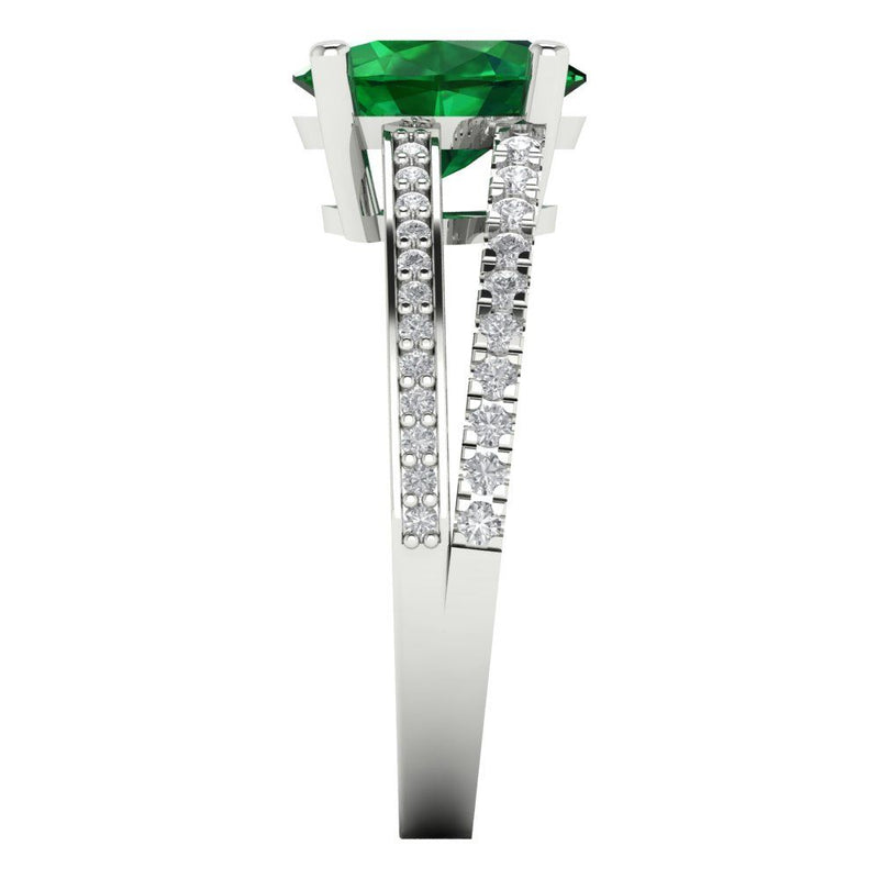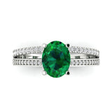 2.32 cttw Simulated Emerald Solitaire with Zirconia Simulated Diamond Accents Engagement Ring - Solid Gold (Oval Cut,9X7mm)