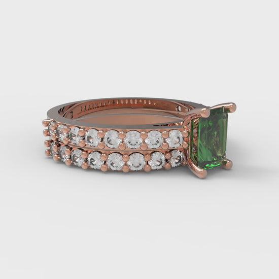 1.325 cttw Emerald Cut Simulated Emerald Bridal Set - Solid Rose Gold Engagement Ring & Wedding Band