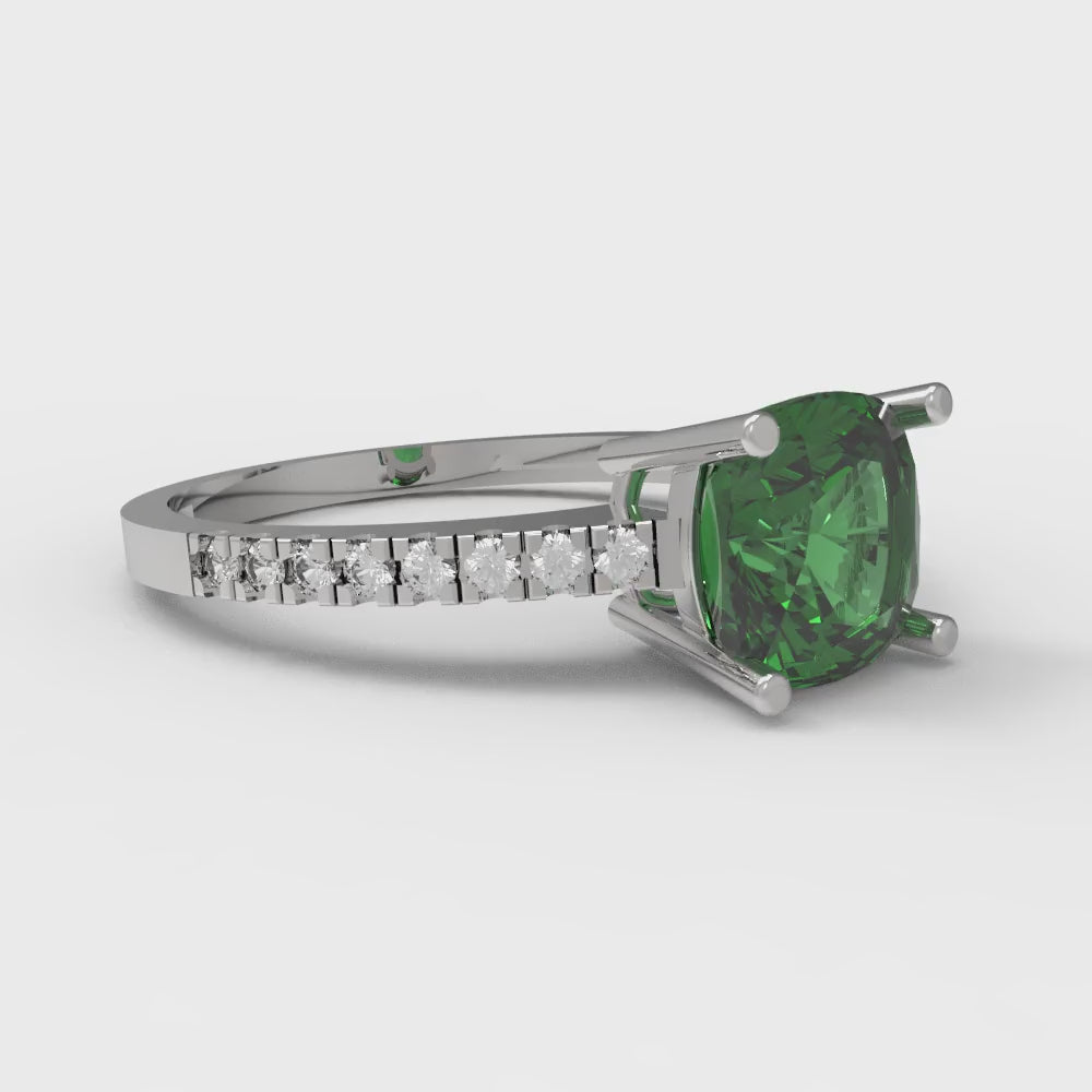 2.7 cttw Simulated Emerald Solitaire with Zirconia Simulated Diamond Accents Engagement Ring - Solid Gold (Cushion Cut,6.5mm)