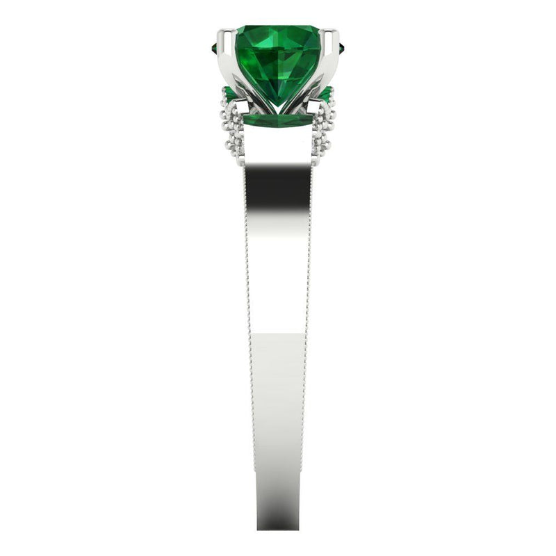 1.06 cttw Simulated Emerald Solitaire with Zirconia Simulated Diamond Accents Engagement Ring - Solid Gold (Round Cut,6.5mm)