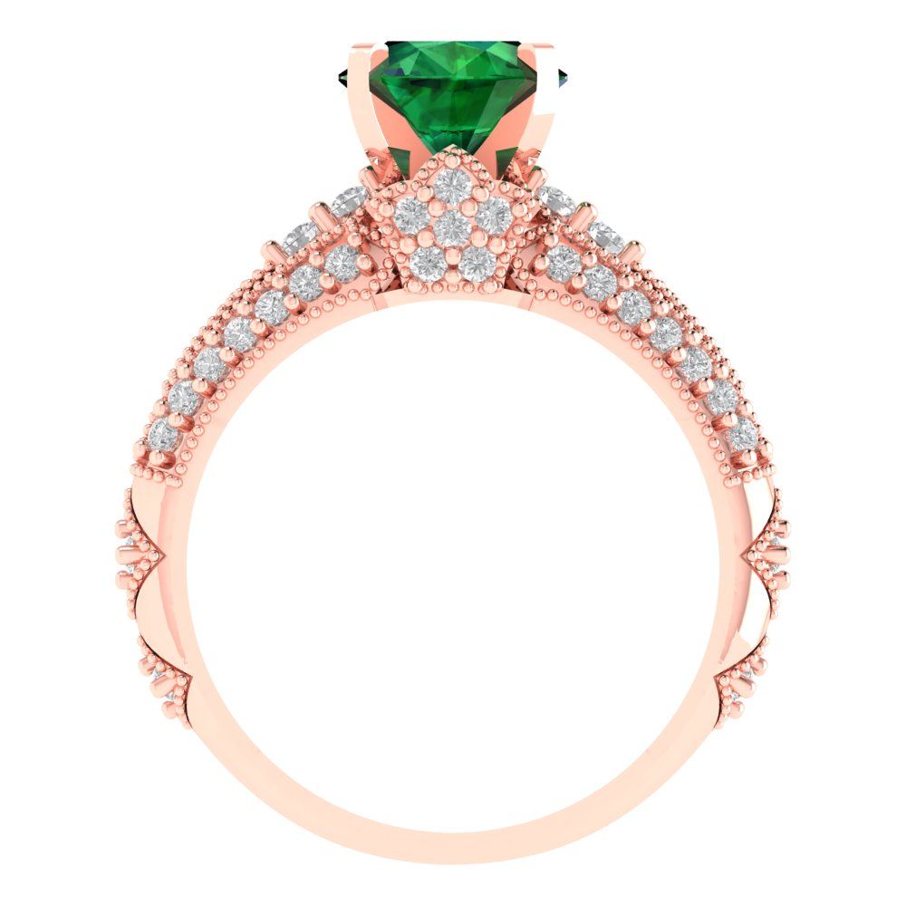 2.095 cttw Round Cut Simulated Emerald Bridal Set - Solid Rose Gold Engagement Ring & Wedding Band