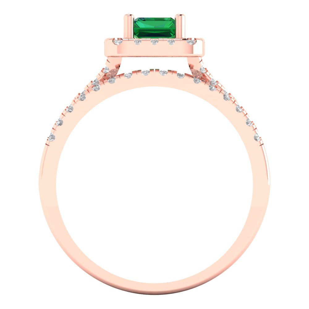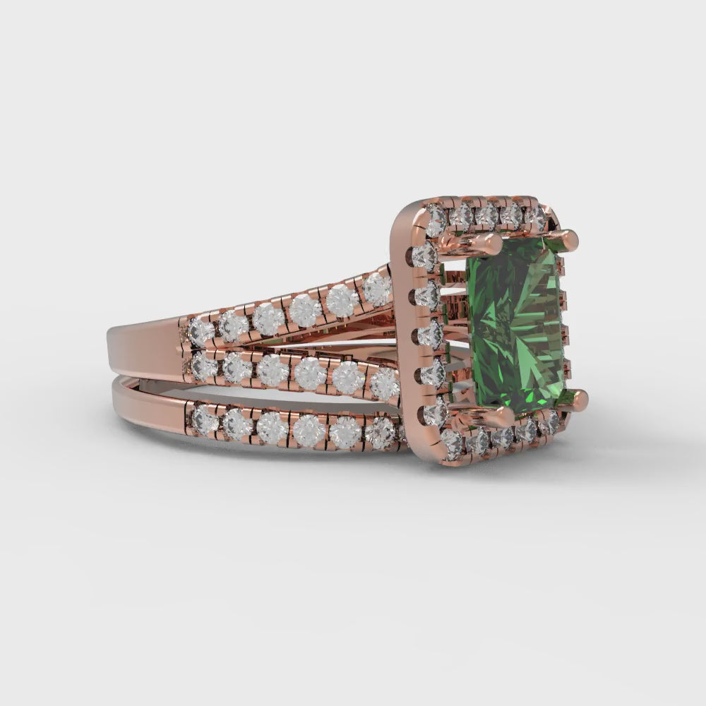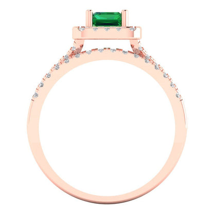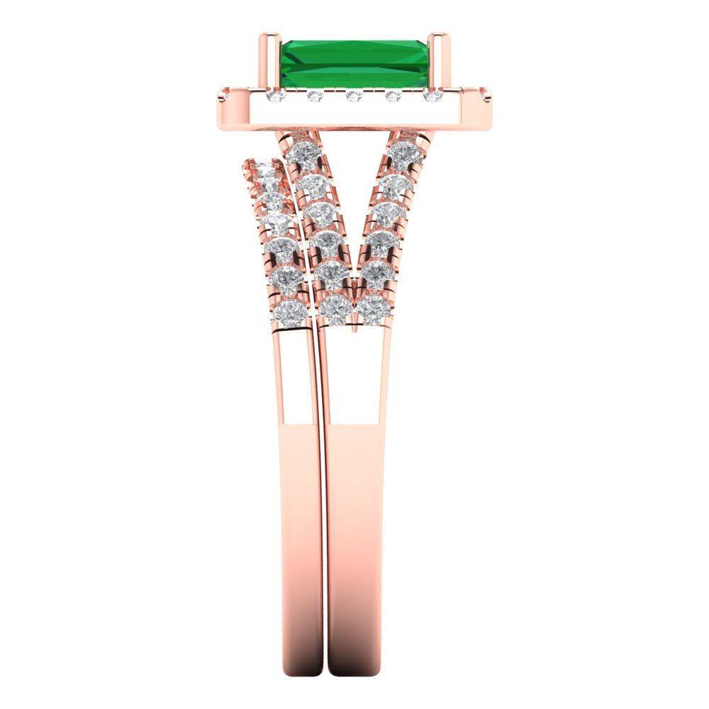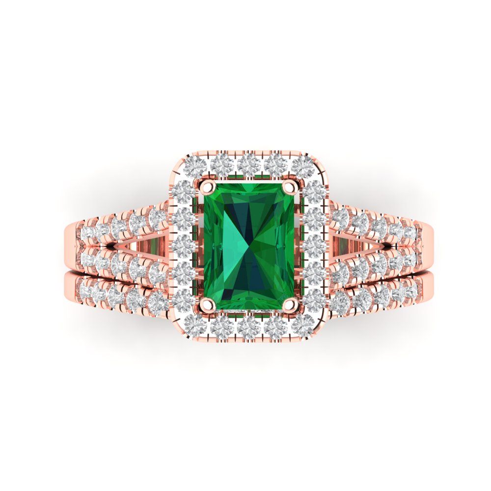 1.72 cttw Emerald Cut Simulated Emerald Bridal Set - Solid Rose Gold Engagement Ring & Wedding Band