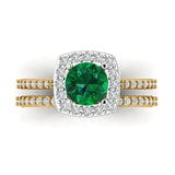 1.495 cttw Round Cut Simulated Emerald Bridal Set - Solid Yellow/White Gold Engagement Ring & Wedding Band